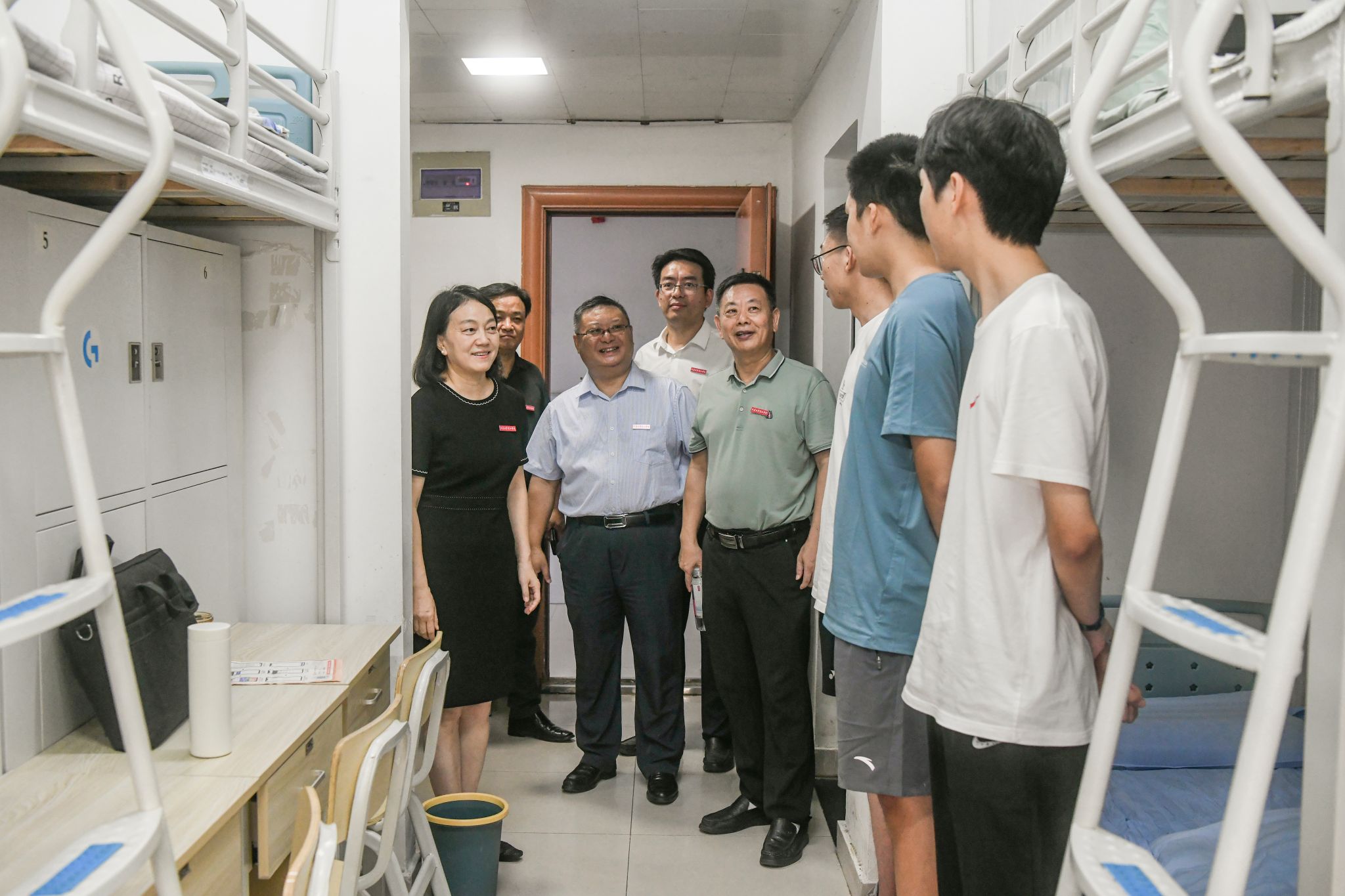 Chen Hong and her party came to the registration points for the orientation, got a detailed understanding of the registration process and the registration situation of the freshmen, and cordially visited the on-site staff. Subsequently, Chen Hong and her party went deep into the freshman apartments to visit the freshmen who had already registered. They had friendly conversations with the freshmen, and inquired in detail about the freshmen's satisfaction with the campus learning and living environment as well as the logistics support work. She hoped that the students would be united and friendly, help each other, adapt to the new environment as soon as possible, and actively integrate into the big family of Jingjiang College. Meanwhile, she encouraged the students to cherish the wonderful time in college, aim high, and study hard. The students expressed their sincere gratitude for the kind care of the school leaders, and said that they would surely keep the teachings in mind, adapt to the campus life of the university as soon as possible, be united and upward, work hard, serve the motherland and contribute to the society.