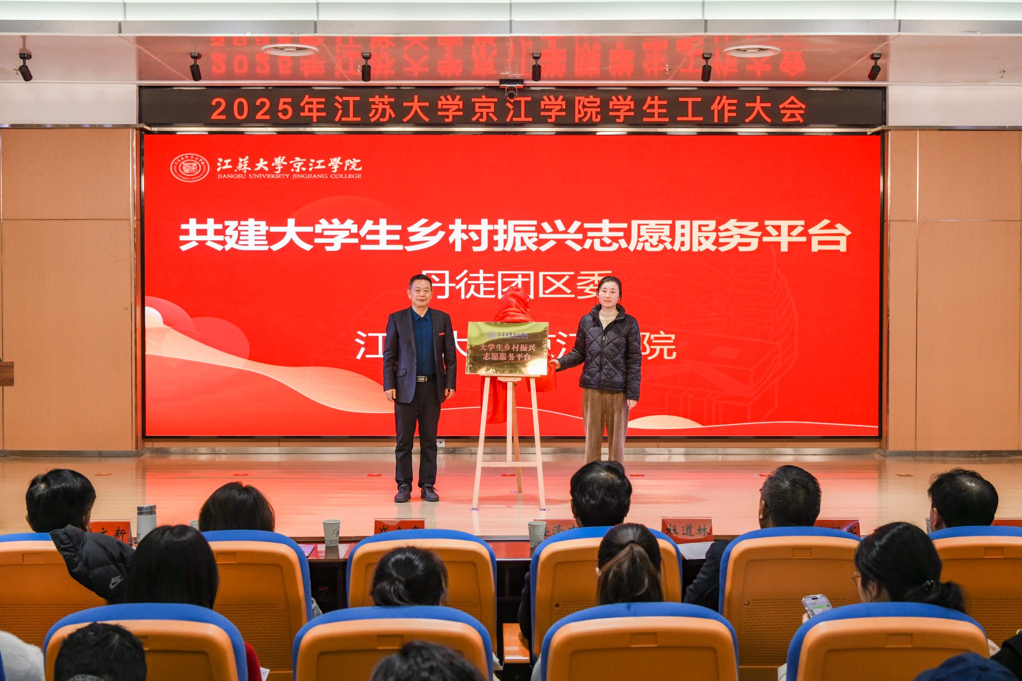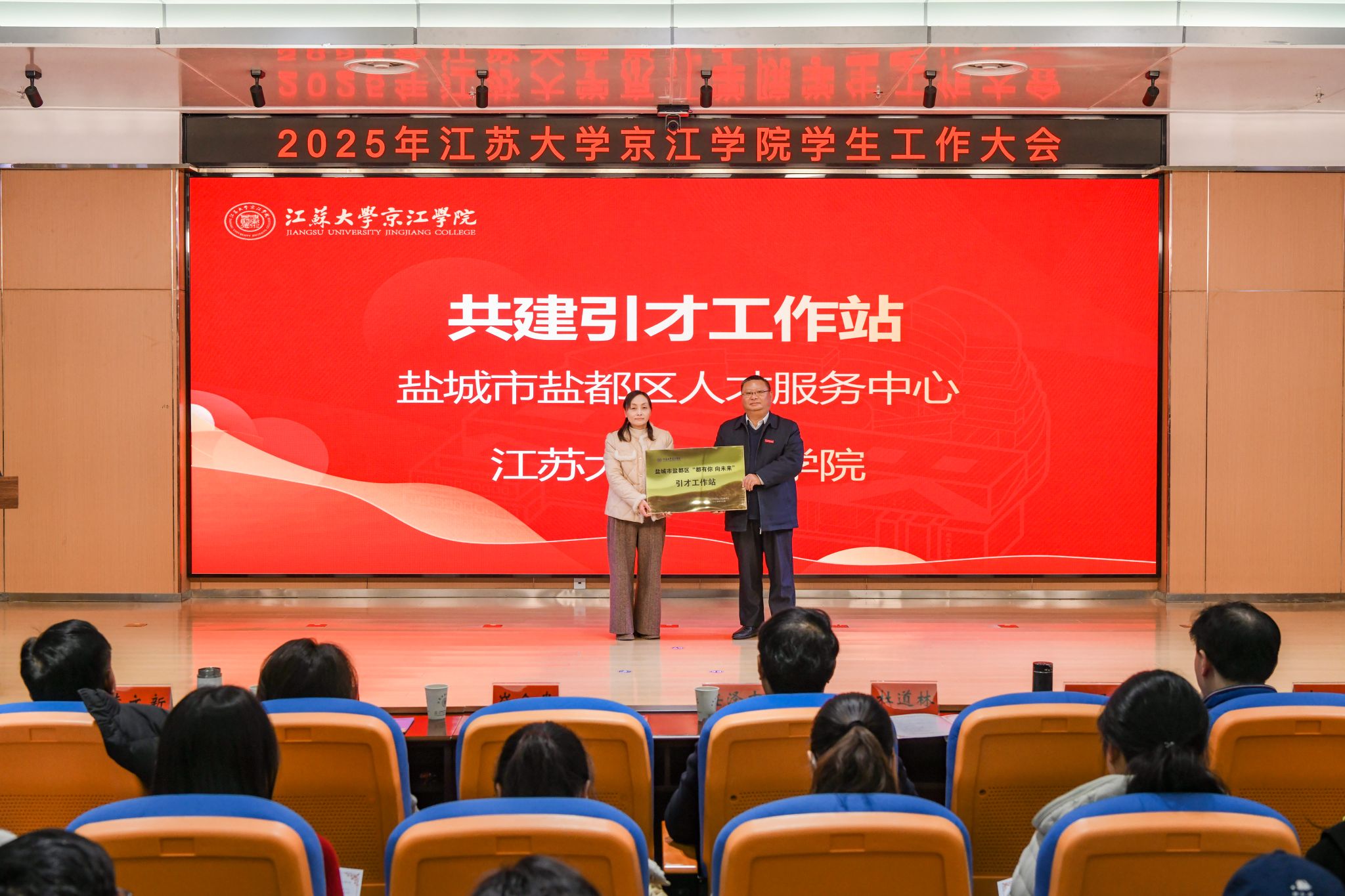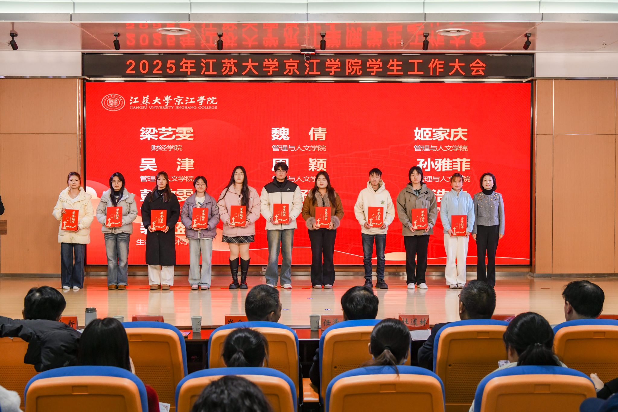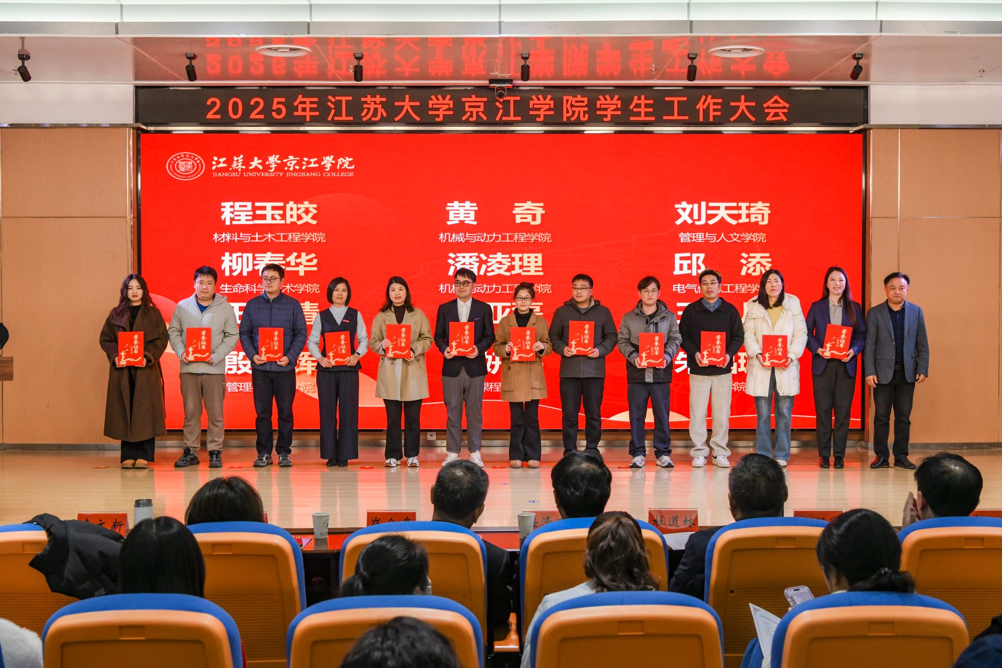 为全面总结学生工作育人经验,凝聚育人合力,推动学生工作高质量发展,12月17日,京江学院学生工作大会在学术交流中心第四报告厅隆重举行。江苏大学学生工作处处长任泽中,全体院领导,各职能部门部长、副部长、部长助理,各二级学院党总支书记、院长、系主任、实验室主任,共建单位代表,全体辅导员,各二级学院学生代表齐聚一堂,共商学院学生工作发展大计。京江学院党委副书记、纪委书记蒋豪主持大会。