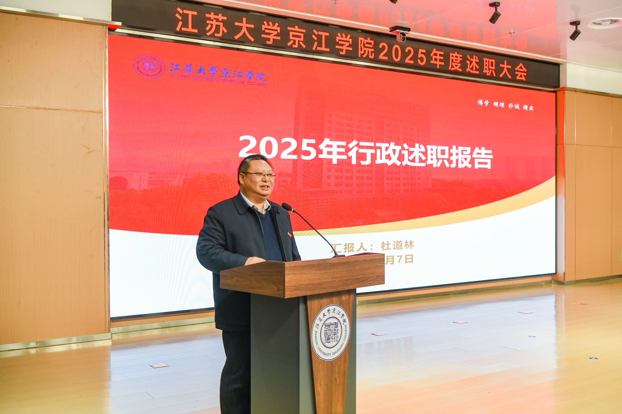 院长杜道林代表行政班子从规范办学、人才培养、专业建设、师资建设、科学研究、保障服务等方面报告了京江学院2025年事业发展情况及成效。他表示,新的一年,行政班子将继续在校党委、行政和学院理事会的坚强领导下,凝心聚力,锐意进取,着力破解发展难题,持续提升办学水平和综合实力,奋力谱写京江学院事业高质量发展新篇章。
