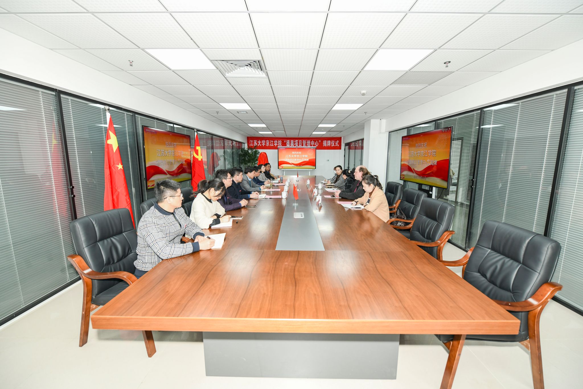 伴随着掌声,赵喜仓和唐小娟为“德奥项目管理中心”正式揭牌。此举也标志着双方的战略合作关系向更深层次方向推进。(撰稿单位:综合办公室)