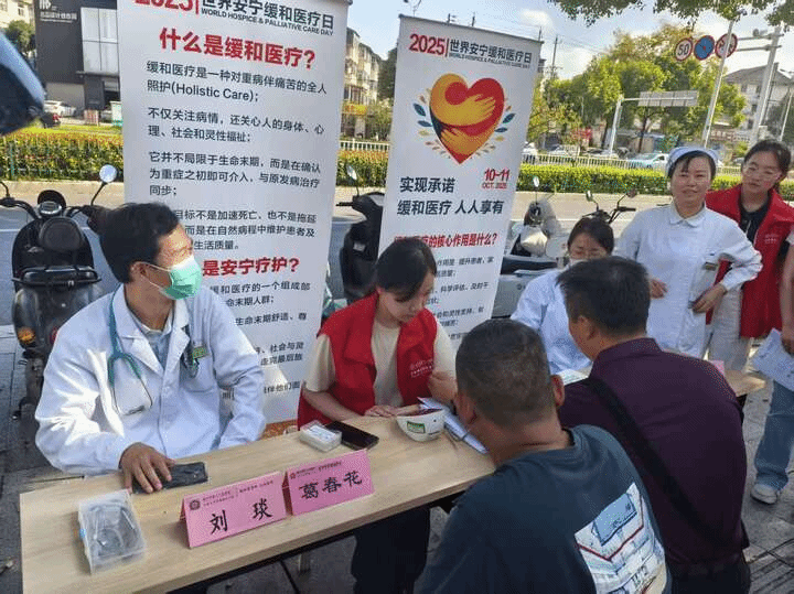 此次活动以“兑现承诺,人人享有”为主题,旨在向公众普及安宁缓和医疗理念,让更多人了解如何在生命末期为患者提供身、心、灵的全维度关怀。活动当天,志愿者们在镇江市青年广场设立了宣传咨询点和义诊区。在宣传咨询区,志愿者们通过发放宣传手册、现场讲解等方式,向过往市民介绍安宁缓和医疗的概念、意义以及服务内容。他们用通俗易懂的语言解释了安宁缓和医疗并非放弃治疗,而是专注于提高患者的生活质量,帮助患者平静、安详地度过生命的最后阶段。在了解相关知识后,市民们纷纷表示对安宁缓和医疗有了全新的认识,并对志愿者们的工作表示赞赏。